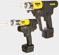 :: REMS Twist/Hurrican :: Electric tube extractor and tube expander Powerful, compact electric tool for efficiently making T-branches for pipe installations without fittings and for efficient cold-expanding of hard and soft tubes for pipe installations without fittings. Combination of REMS Twist and REMS Hurrican Extracting: Hard and soft copper tubes Ø 10-22 mm, Ø 3/8-7/8", s ≤ 1.5 mm. Expanding: Hard and soft copper tubes Ø 10-22 mm, Ø 3/8-7/8", s ≤ 1.0 mm. REMS Hurrican - for making T-branches yourself Inexpensive. Also on tubes already installed. REMS Twist - for making sockets yourself. Cold-expanding of hard copper tubes. |